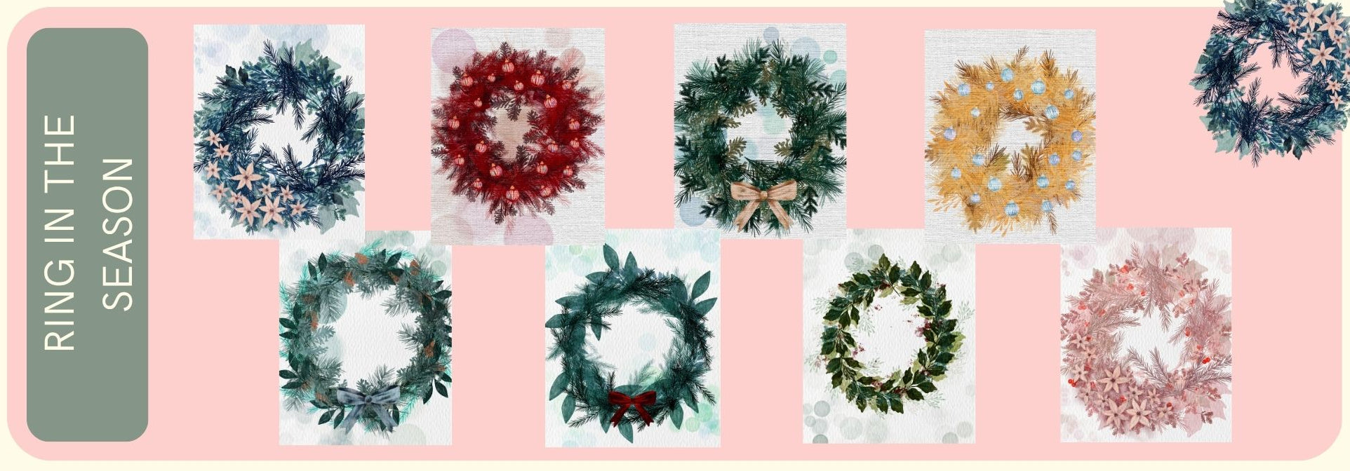 This Wreath Collection features 8 unique designs featuring different styles of holiday wreaths. Original digital watercolour and digital painting designs. Blank inside with lots of room for a personal note. These are the perfect size to tuck a gift card or photos into.