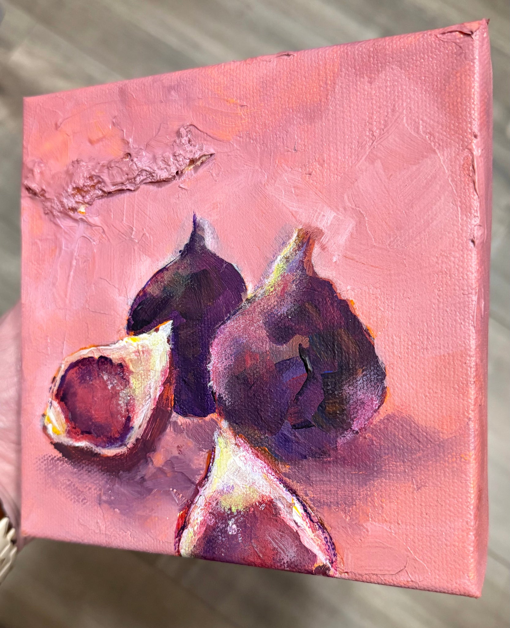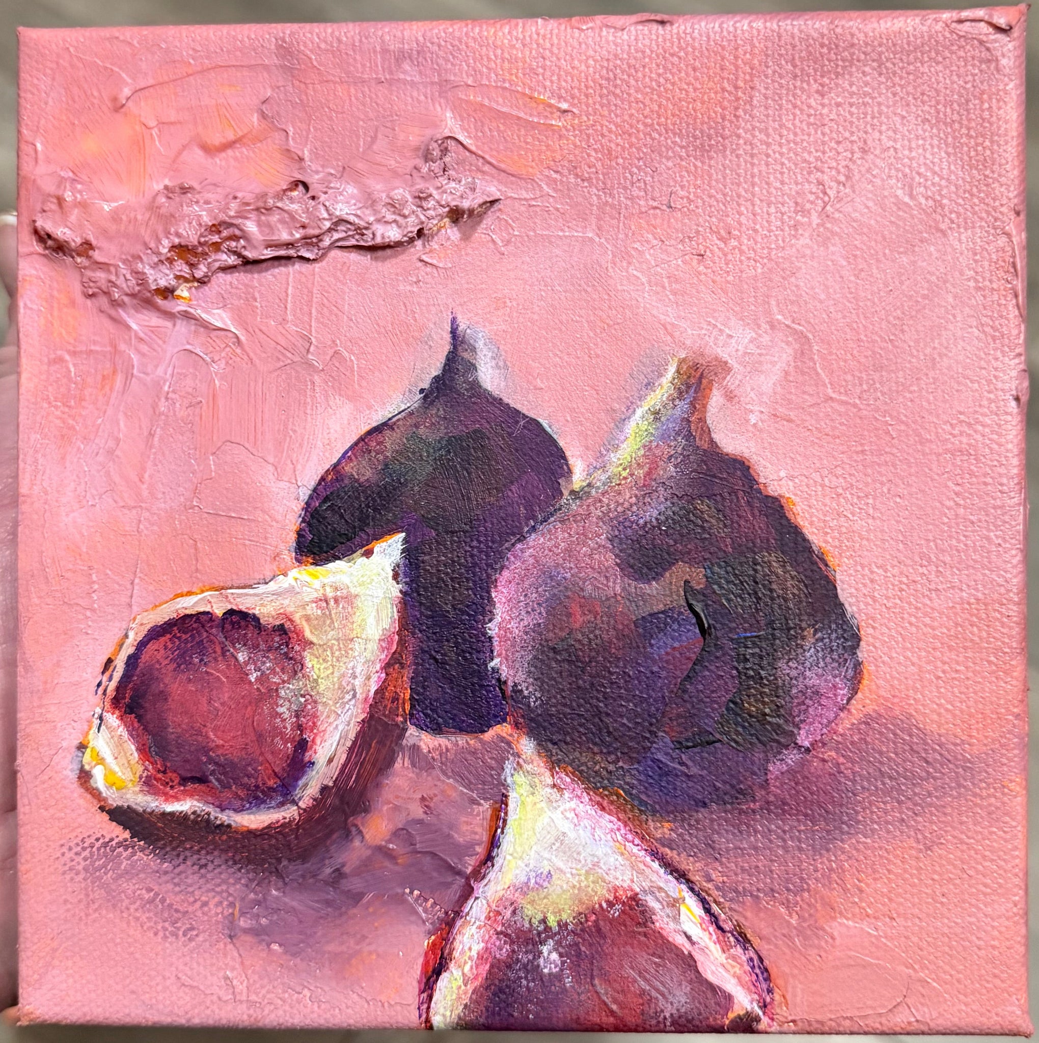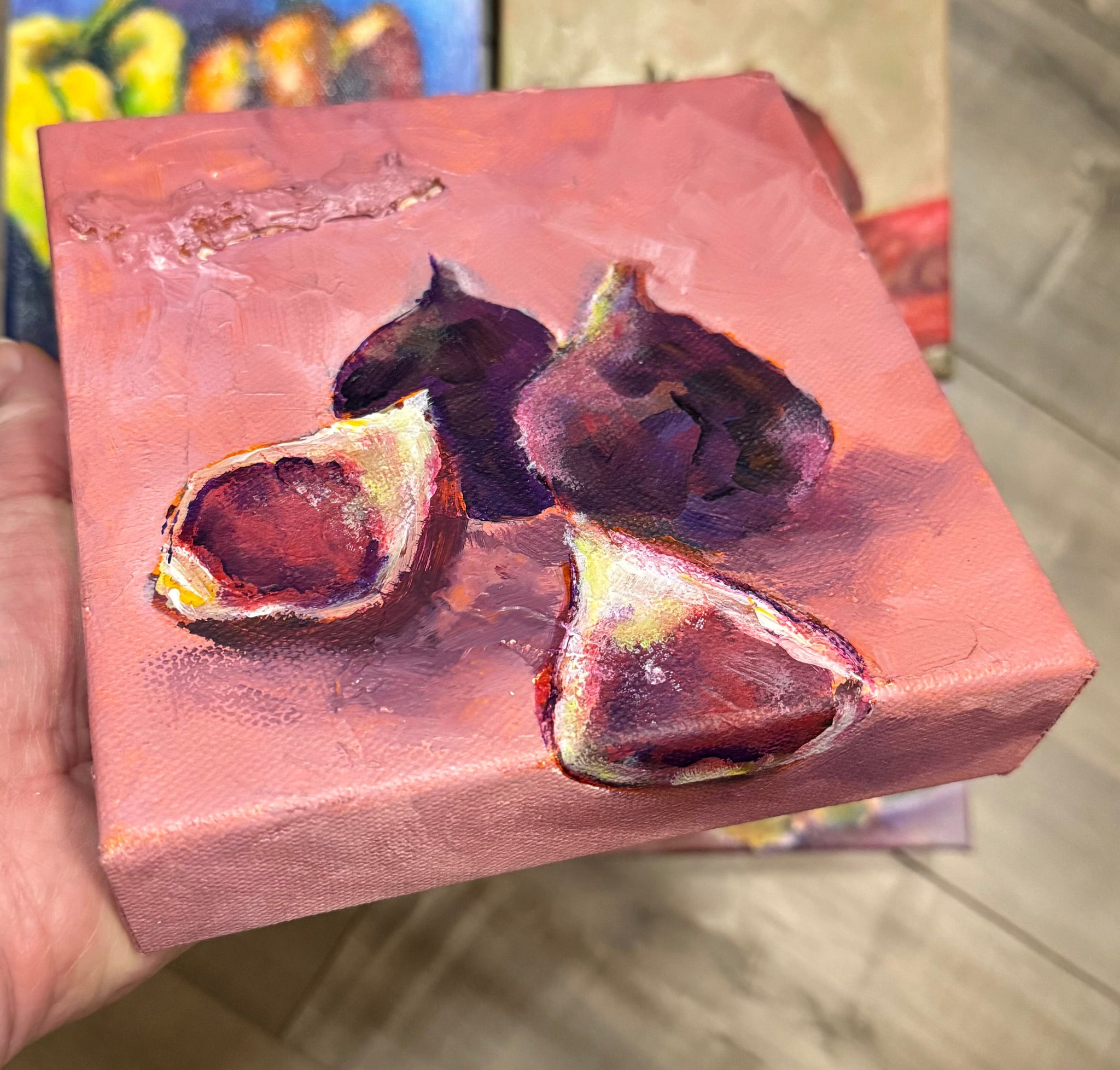 This piece is 6 x 6" and on 1.5" gallery-depth canvas